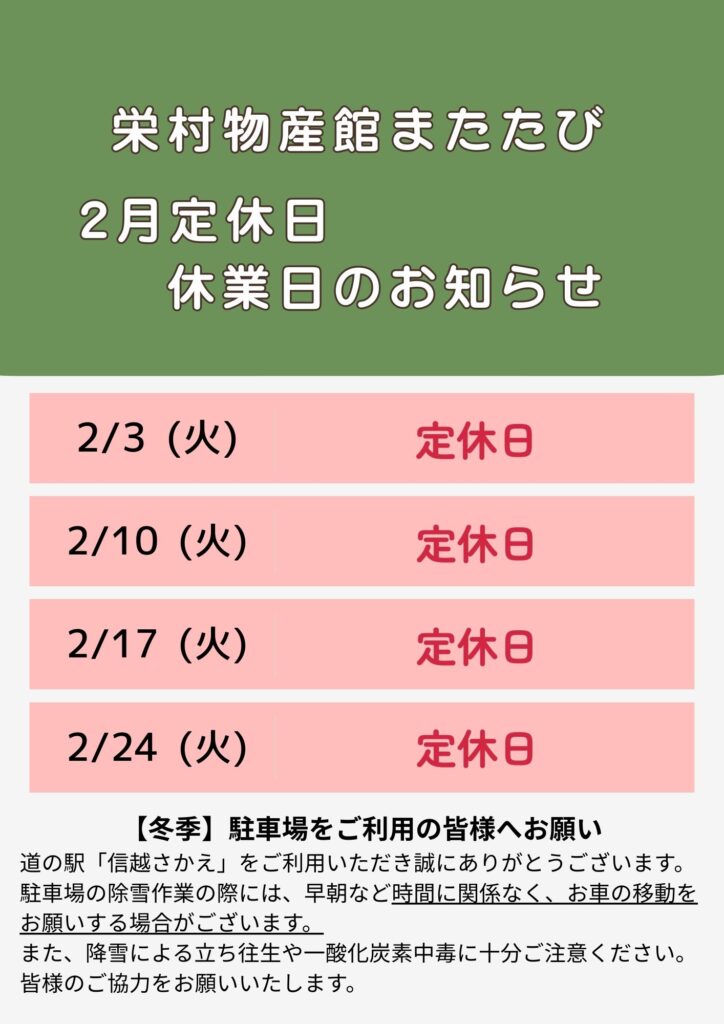 2月営業日のご案内